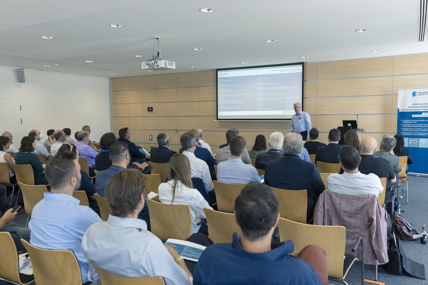 Viel Zeit zum Netzwerken, eine Reihe toller Vorträge und reges Interesse an Umsetzungsbeispielen der Netzwerkmitglieder im „Smart Production Demonstrator“ – das war unser 14. Netzwerkforum. Über 100 Teilnehmer erlebten mehrere "Weckrufe" zum Thema der gesetzlichen Anforderungen rund um Co2 und den Klimawandel. Aus unterschiedlichen Blickwinkeln beleuchteten die Referenten die Notwendigkeit nachhaltigen Handelns. Einen Einblick in den Paragrafendschungel gab es ebenso, wie ganz konkrete Angebote, wie sich Unternehmen schon jetzt vorbereiten können. Abgerundet wurde die Vortragsreihe durch einen Praxisbericht aus dem Mittelstand, der eindrucksvoll gezeigt hat, dass auch kleine Unternehmen mit vertretbarem Aufwand alle 17 globalen Ziele für nachhaltige Entwicklung (Sustainable Development Goals, SDGs) der Agenda 2030 umsetzen können.